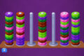 ソートワークス ナッツ&オーダーナットを付け替えてネジ棒ごとに色を揃えるソート系パズルゲーム。